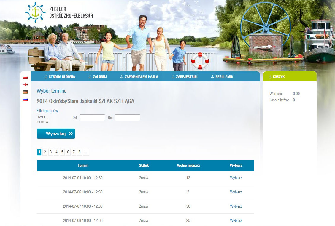 Rezerwacja i sprzedaż biletów w module Internet odbywa się na stworzonej w tym celu stronie internetowej. Strona może być przygotowana w standardowej szacie graficznej modułu Internet lub w oparciu o szatę graficzną strony internetowej Klienta. Poniżej prezentujemy przykładowe widoki modułu Internet na stronach naszych Klientów.